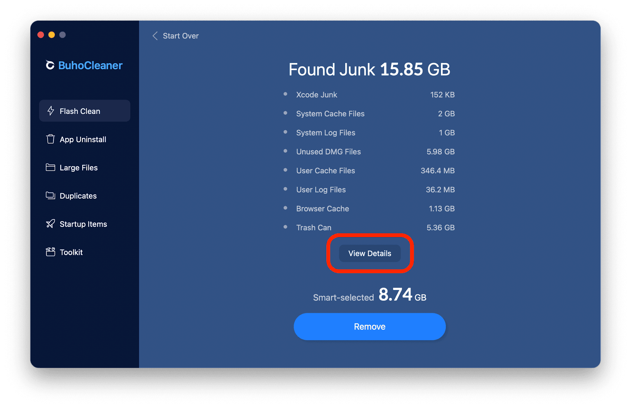 BuhoClaener for Mac can clean up the files that are no longer needed on your Mac. Files like old documents, large media files, caches and logs can be removed safely using BuhoClaener for Mac.
