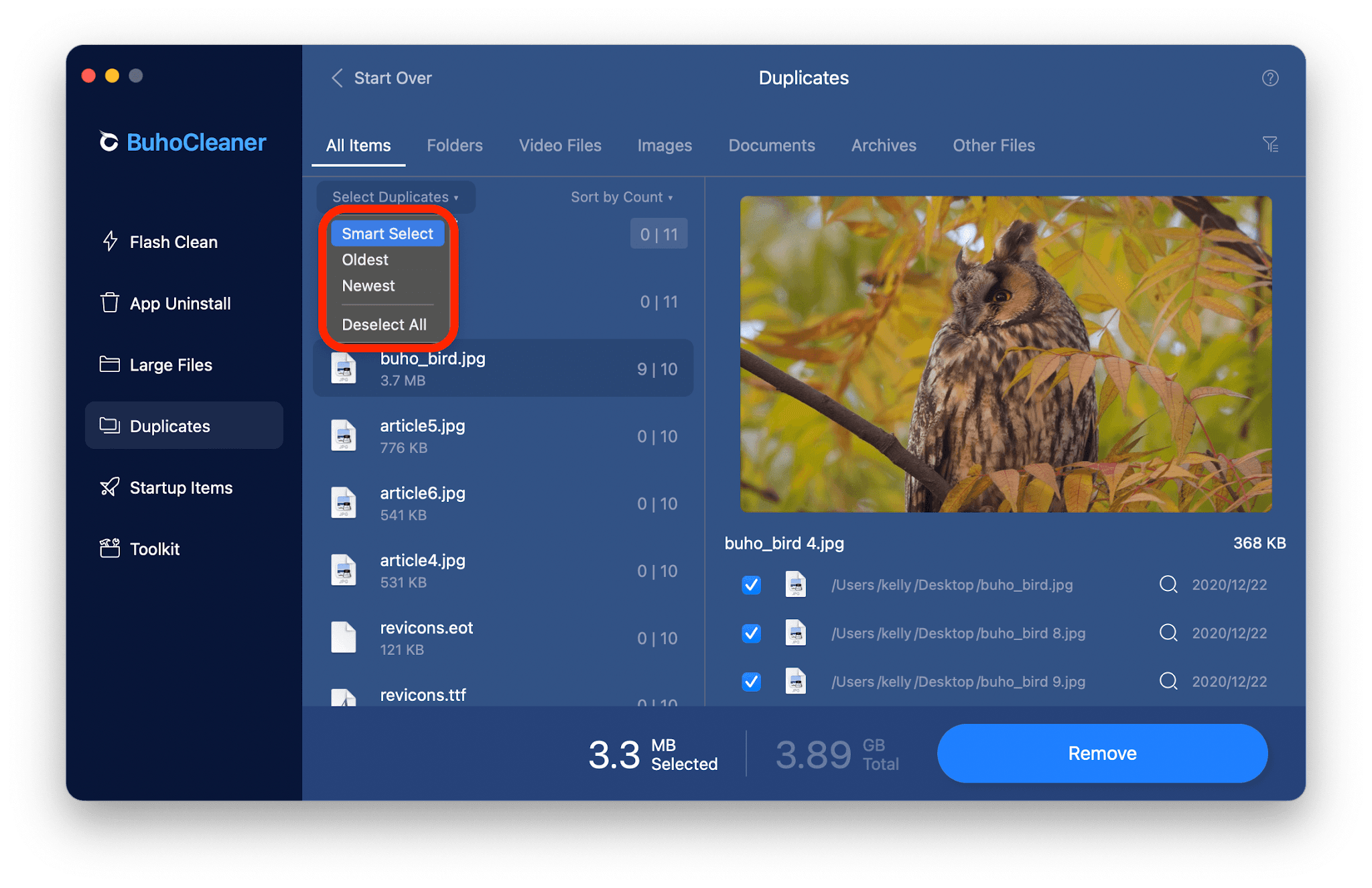 BuhoCloner allows you to search for and delete duplicate files on your Mac.