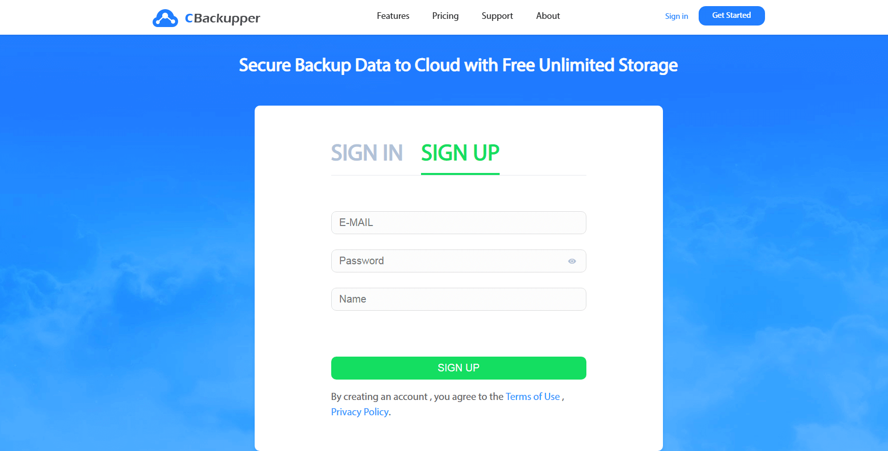 Step 1. Go to the official website of CBackup, create a CBackup account and sign in.