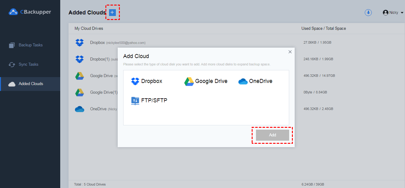 Note: You can add multiple cloud storage accounts owning to one or different cloud storage.