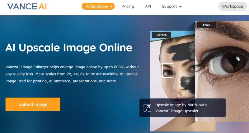 1. The link above can be used to get to the Image Upscaler homepage wherein you can see example images and other info. The Upload Image will take you to the VanceAI Workspace for image upload.
