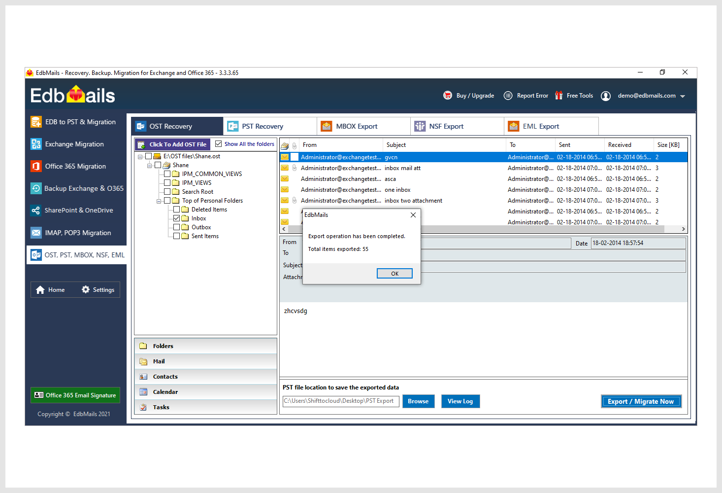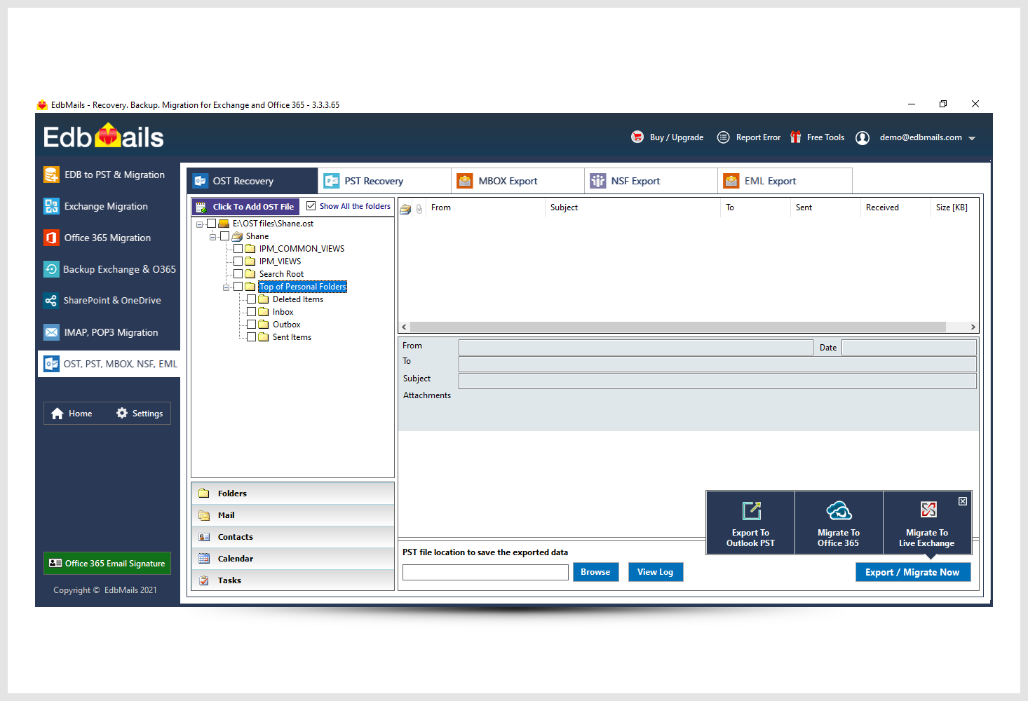 EdbMails OST to PST converter is a qualified and highly recommended software that converts OST files to PST format. With 100 percent precision and accuracy, the tool granularly extracts mailbox data from OST files, including emails with attachments, calendars, contacts, journals, etc., and exports it to PST format. It does not update or modify any of the file’s contents including mail formatting.