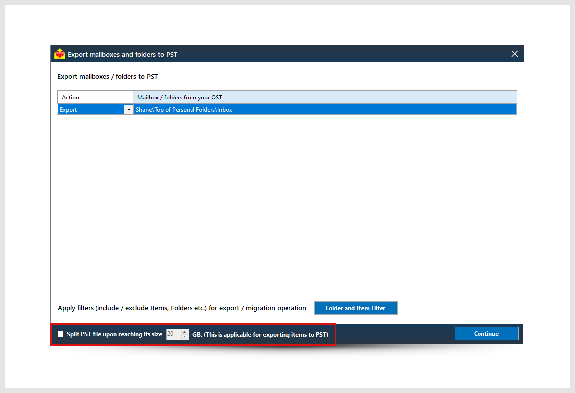 There is also a PST split function available before you start the export process. This is useful if you would like to split a large size file into multiple smaller chunks. If you are wondering how to merge them back, the EdbMails suite of free tools has a PST merge utility for your convenience.