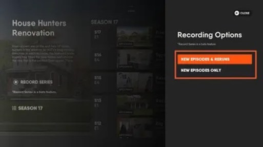 Even, since there is usually uncertainty about the recording of old episodes, we must call to mind to select the newest Episodes AND Reruns option into the Record Series menu, as all programs will not retroactively record any past content.