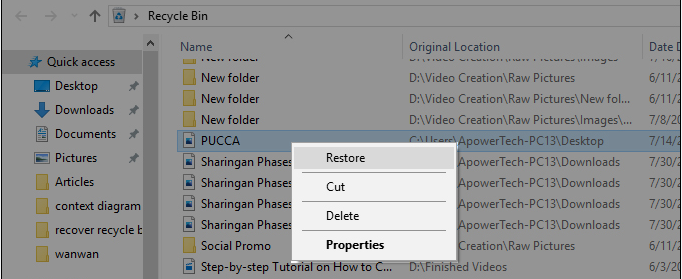 • 2.1 Recover Deleted Files Using Recycle Bin