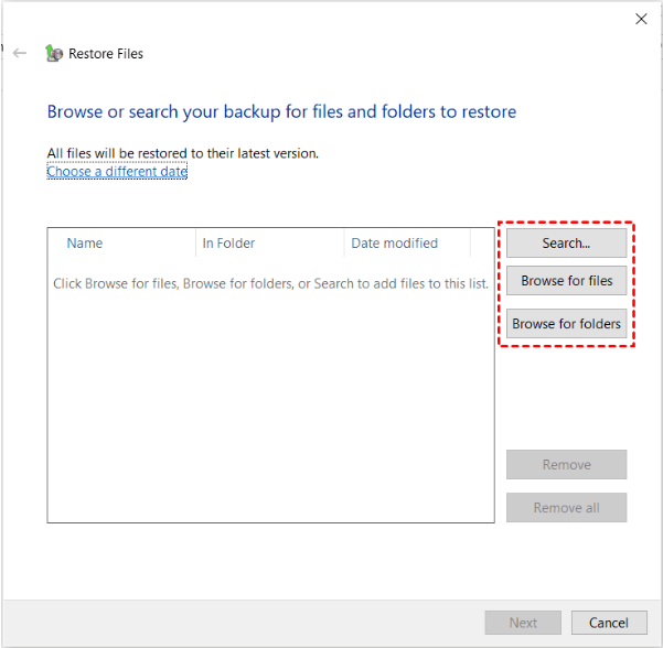 You can search or browse for your files and folders. If you find your desired files, select a destination and hit restore.
