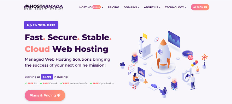 Their support staff is really helpful and knowledgable. If website speed is your first concern, HostArmada seems to be a cost-effective choice with its flexible price levels.