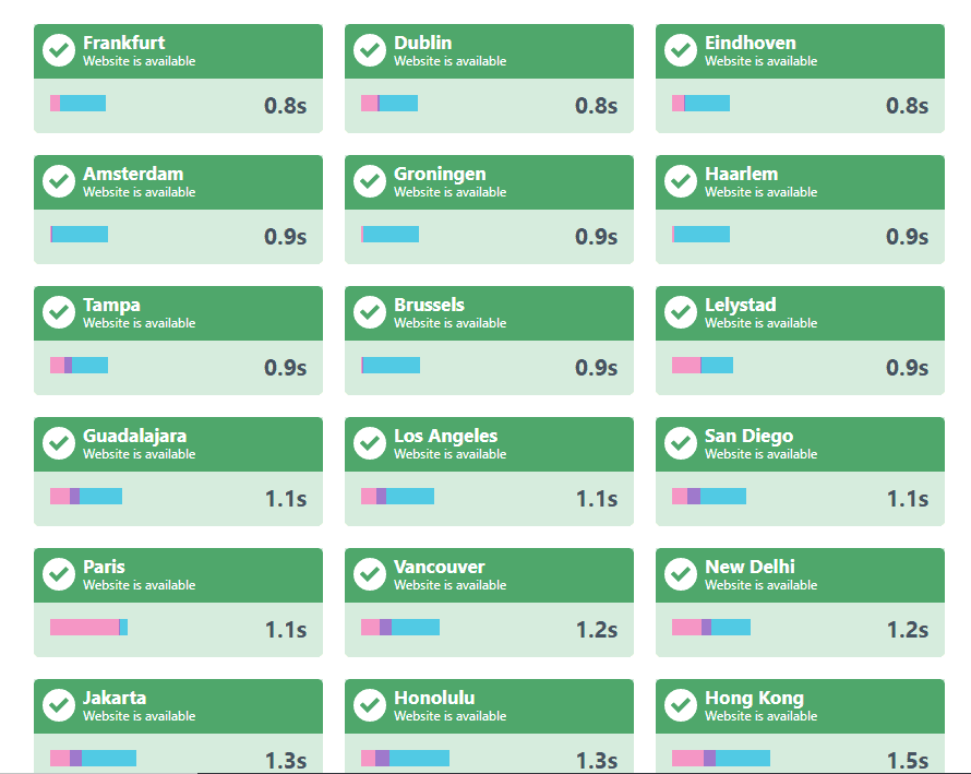 The Mumbai server had a response time of 5 ms for the Web Warp plan. A speedy server response time is guaranteed by the Indian data center. Thus, US servers had the longest response time, ranging from 254 milliseconds to 329 milliseconds. The Singapore server has a latency of 60 ms.