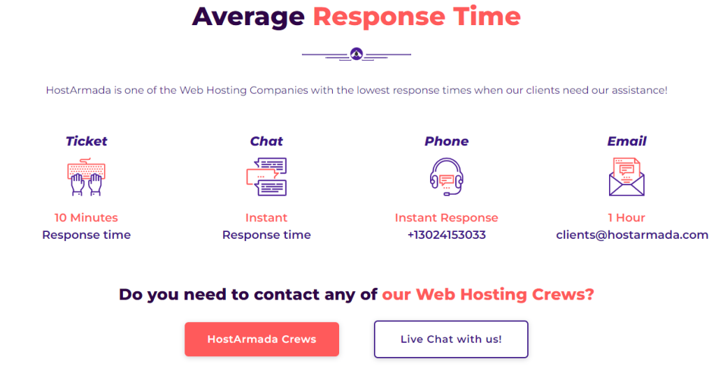 HostArmada has first-rate live chat assistance available at all hours of the day. Quick and detailed responses are provided. The website also has a helpful knowledge base with answers to frequently asked questions.