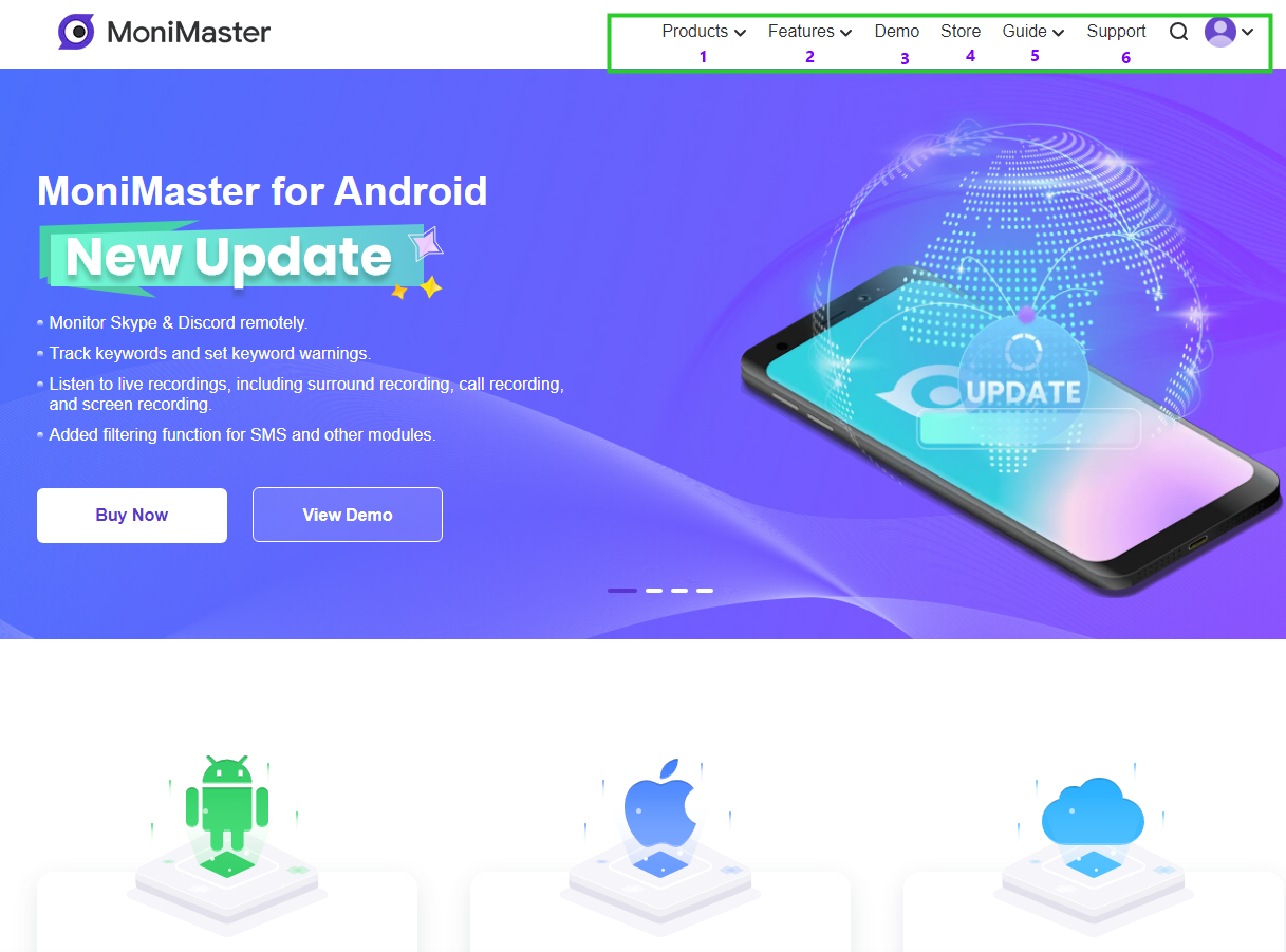 In order to cater to different demands, there are 4 products: MoniMaster for iOS, MoniMaster for Android, MoniMaster for WhatsApp, and MoniMaster for iCloud. For this article, we will explore MoniMaster for Android.