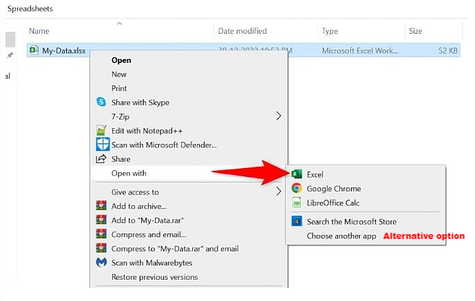 If you have multiple spreadsheet programs installed on your computer, it’s possible that you’re inadvertently using a non-Excel application to open the file. To resolve this, you can ensure that the file is opened using the correct Excel app: