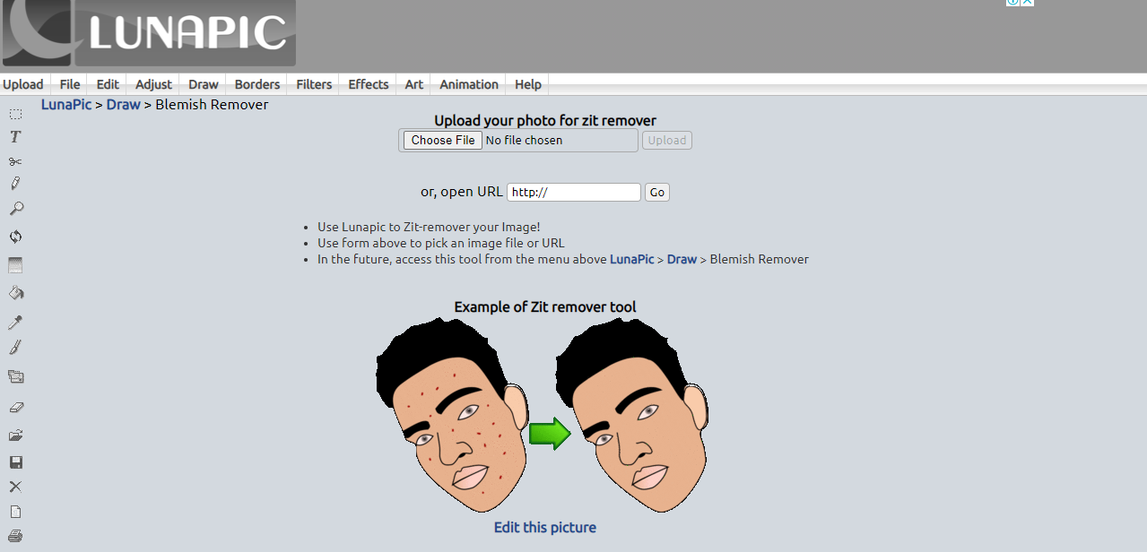 LunaPic is a free online photo editor that offers a blemish-removal tool for users to edit their selfies and portraits. The app provides a simplified interface that makes it easy to navigate, even for beginners. Although LunaPic offers other editing features, it’s mainly known for its blemish-removal tool. Users can easily upload their images and start removing zits, blemishes, and wrinkles with just a few clicks.