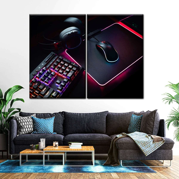 Take a look at gaming room size, video gaming-themed art, pc gaming chairs, trendy furniture, and retro library.