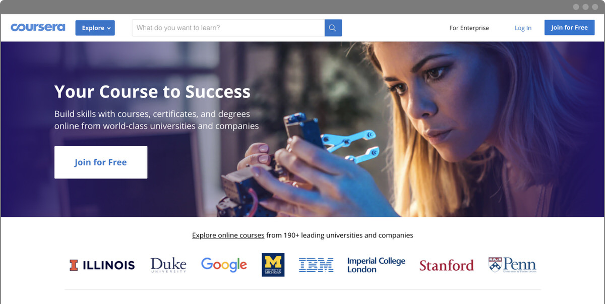 Coursera includes courses from places like Duke University and Stanford. Coursera only partners with universities or institutions so you cannot apply to add a course to their platform by yourself.