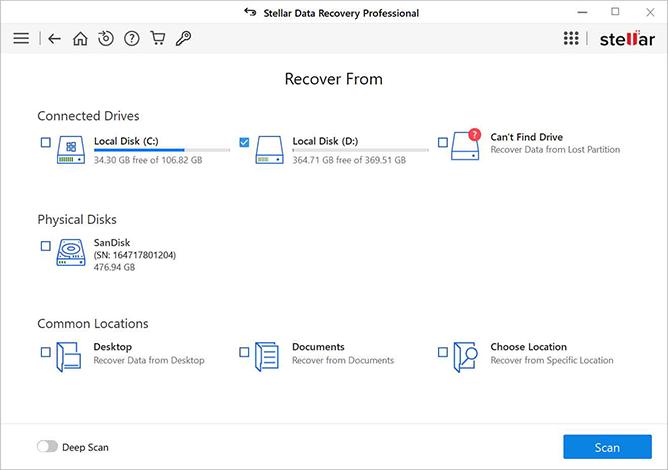 If the above method fails to restore your lost data from the partition on Windows devices, you can use a professional data recovery software. Among several such recovery tools, Stellar Data Recovery Professional is the best partition recovery software with easy to use interface that anyone can follow. Whether you are a beginner or tech-savvy, you can easily use this recovery tool and it supports recovery in three simple clicks.